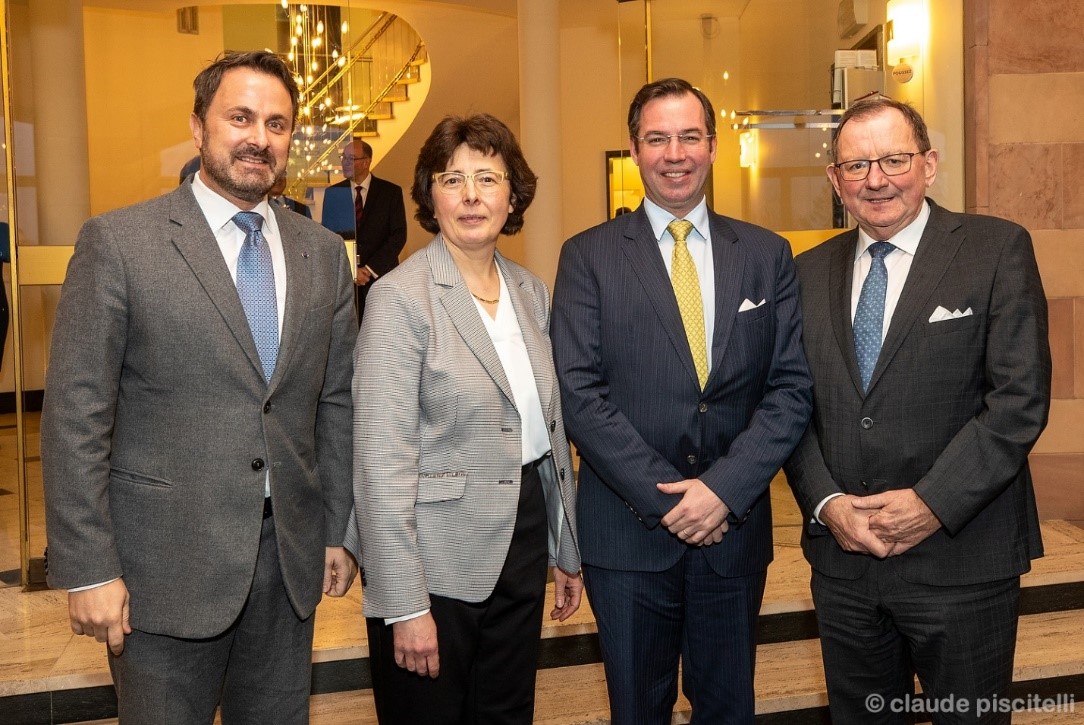 S.A.R. Le Prince Guillaume, Membre du Conseil d’Etat, entouré de M. Fernand Etgen, Président de la Chambre des députés (à dr.), M. Xavier Bettel, Premier Ministre (à g.), et Mme Agnès Durdu, Présidente du Conseil d’Etat (2e à g.)